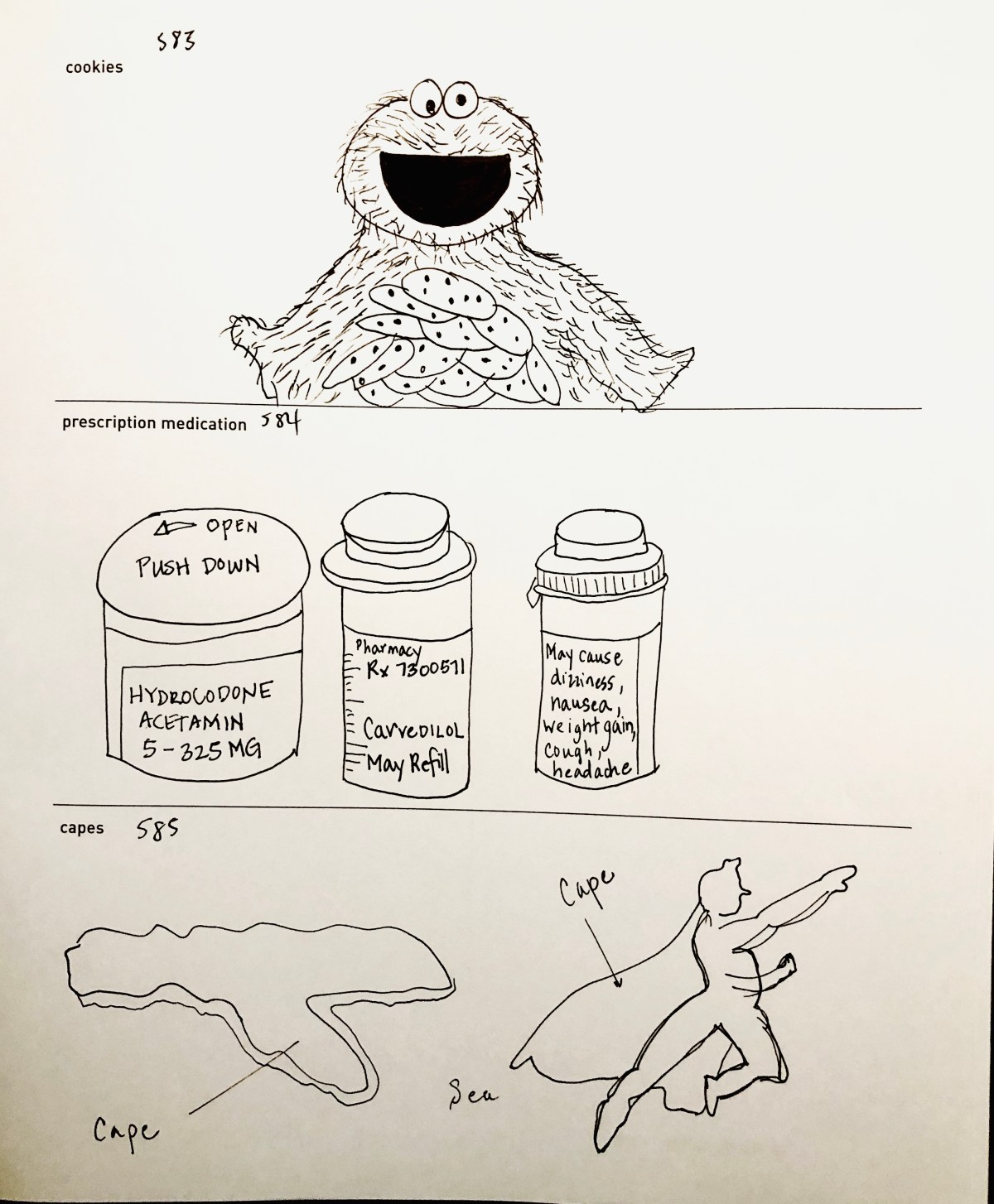 Cookies, prescription bottles, and capes