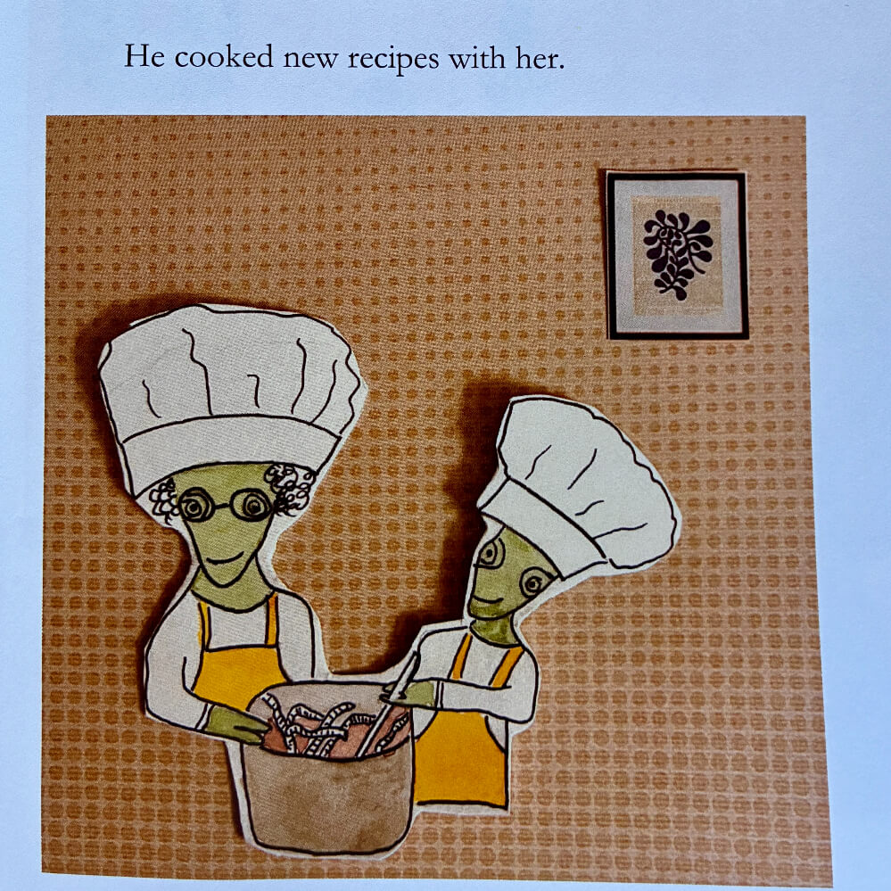 I completed Kevin and His Grandma, my fifth book. My objective of writing, illustrating, and self-publishing this book was to be creative. I chuckle when my students ask me how much money I have made on my books. I do not even market them and am certainly not ready to get others to buy them! I am striving to write and illustrate well. Perhaps by my 25th book I will be satisfied. In the meantime, I am just enjoying the process. This book was purposely created with as little technology as possible. I cut pieces and made collages, drew freehand, and used watercolor. I love Arnold Loebel’s simple illustrative style in pursuit of graphically representing relationships.